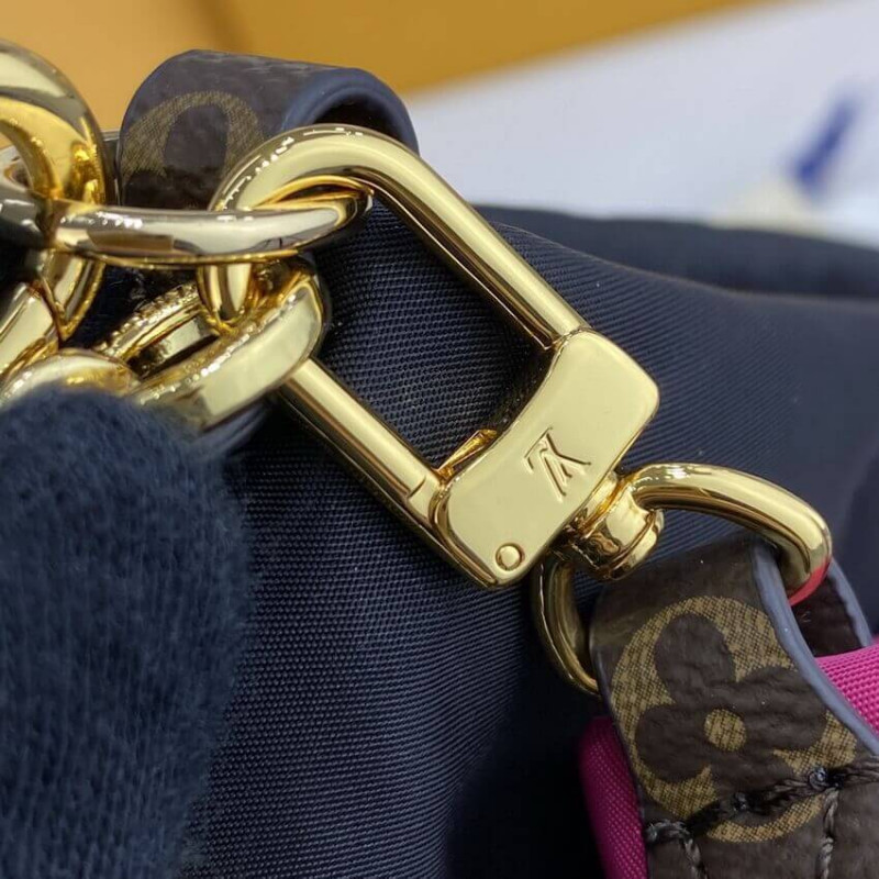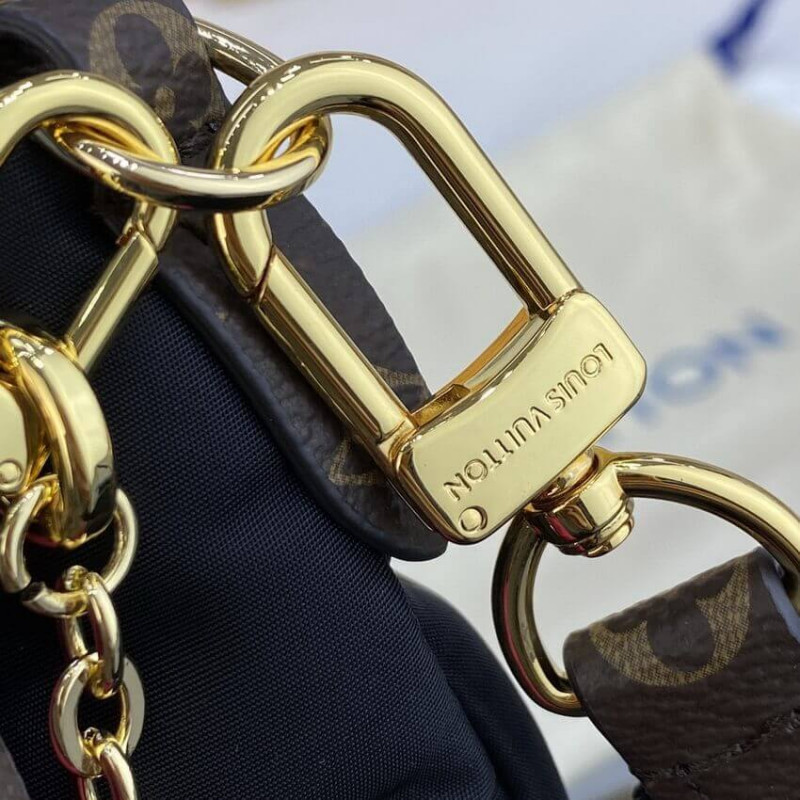A bolsa híbrida Maxi Multi Pochette Accessoires vem em nylon regenerado econil ecológico. O exterior é bordado com um padrão de monograma, dando-lhe um aspecto acolchoado confortável e forrado com o mini-monograma impresso econil. Esta bolsa de corpo cruzado possui vários bolsos e compartimentos e combina um acesso de Pochette, um mini accessoires de Pochette e uma bolsa de moedas redonda. TRIMENTO DE TANVAS