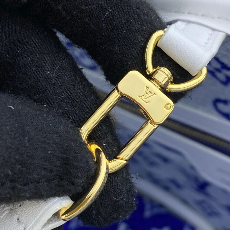 Da coleção de partidas do LV, inspirada no tênis mundial do Grand Slam, vem esta edição esportiva da icônica Tote Neverfull Mm. É feito de um monograma aveludado Jacquard, tecido com fios 100% sustentáveis, acabados com acabamento em couro branco e hardware dourado. O revestimento apresenta a mesma impressão de monograma em um colorway reverso, para um efeito divertido.