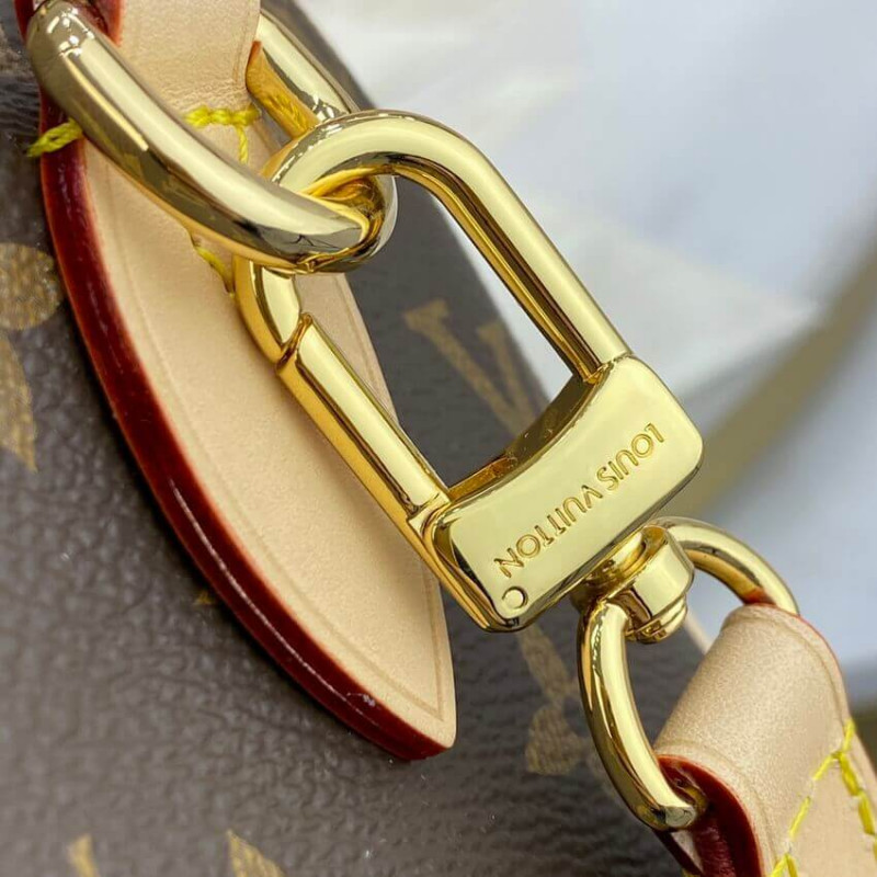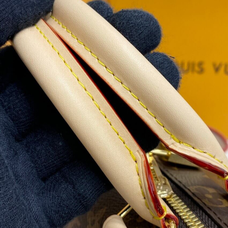 Como uma versão diminuta da histórica bolsa de viagem rápida da casa, a rápida bolsa Bandouliere 20 é criada a partir de tela de monograma com guarnição natural de couro. Além das alças de couro enrolado, há uma ampla cinta têxtil destacável com uma assinatura de Louis Vuitton, tecido. O design clássico desta bolsa é concluído com revestimento têxtil vermelho. Hardware