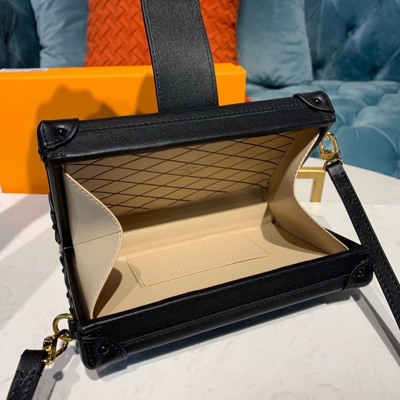 Introduzido para o pré-outono de 2019, esta edição do Petite Malle é criada a partir de couro lustroso em couro com relevo com monograma vernis. O pequeno tronco cobiçado faz uma declaração glamourosa com silhuetas noturnas, carregadas como uma embreagem ou usadas na pulseira de couro removível. A queda pode ser ajustada para o desgaste do ombro ou do corpo cruzado. [BR]]Hardware de cor dourada