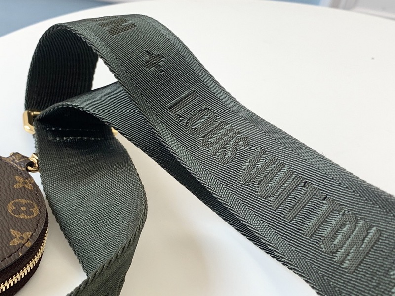 O Multi Pochette Accessoires é uma bolsa híbrida de corpo transversal com vários bolsos e compartimentos que reúne um Pochette Accessoires, um mini acesso de Pochette e uma bolsa redonda. Mortando a tela do monograma com um mini padrão de monograma nas laterais dos dois Pochettes, possui uma corrente removível de tons de ouro e uma pulseira de Jacquard Louis Vuitton ajustável para várias opções de transporte.