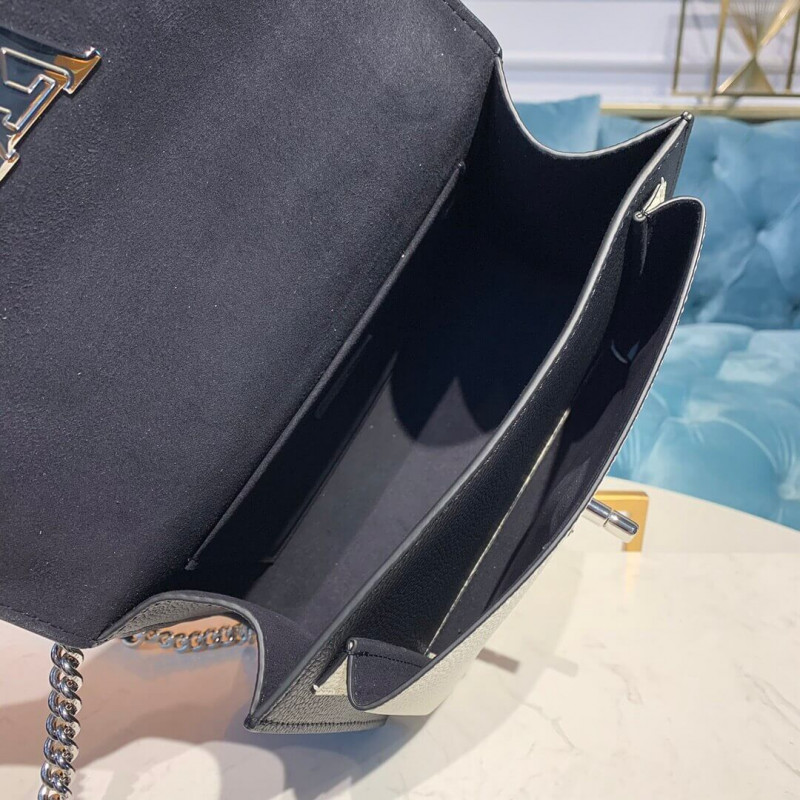 A elegante bolsa MyLockme BB vem em couro de bezerro preto e creme com uma aba no roccia natural. A aba no estilo do envelope, que é um detalhe-chave da linha MyLockme, é protegida com uma trava de giro das iniciais do VE. Esta bolsa apresenta uma alça ajustável para transporte de ombro ou corpo cruzado. Encontramento de couro de bezerro granulado