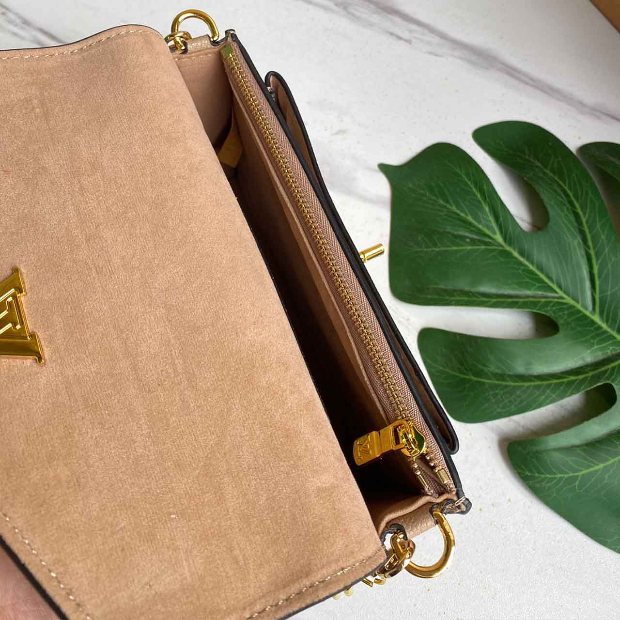 A edição monocromática ousada da bolsa Mylockme destaca as linhas gráficas puras da bolsa. Feita de pele de bezerro de granulação macia, esse modelo é acentuado com hardware fresco e tom-tone: a cadeia e a trava de volta ao LV de assinatura ressalta o couro ricamente pigmentado. A cinta apresenta detalhes elegantes da corrente e uma almofada de couro ajustável para desgaste do ombro ou do corpo cruzado.