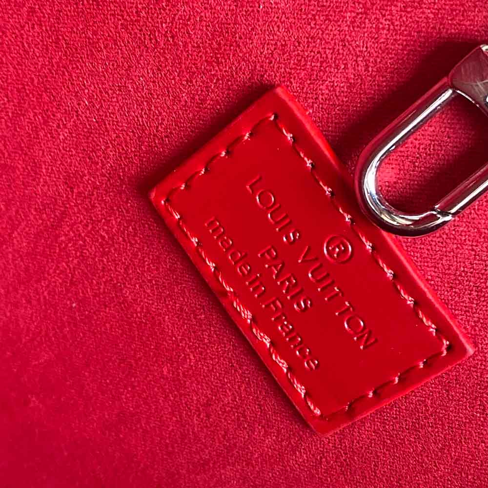 A Tote Neverfull MM une um design atemporal com detalhes do patrimônio. Mortando-se de couro EPI rico e tingido, com acabamento liso de couro, este modelo é um carregador espaçoso e, com os cadarços laterais apertados, uma bolsa de cidade chique. Alças finas e confortáveis tornam um prazer levar, por cima do ombro ou no braço. Uma bolsa fechada removível, também em couro EPI, pode servir como um bolso extra ou uma pequena embreagem.