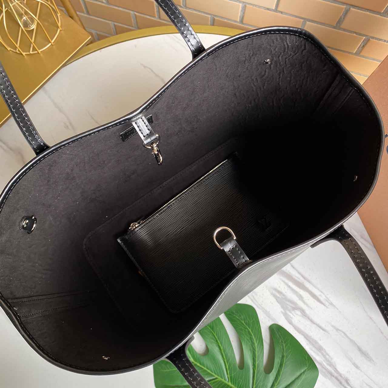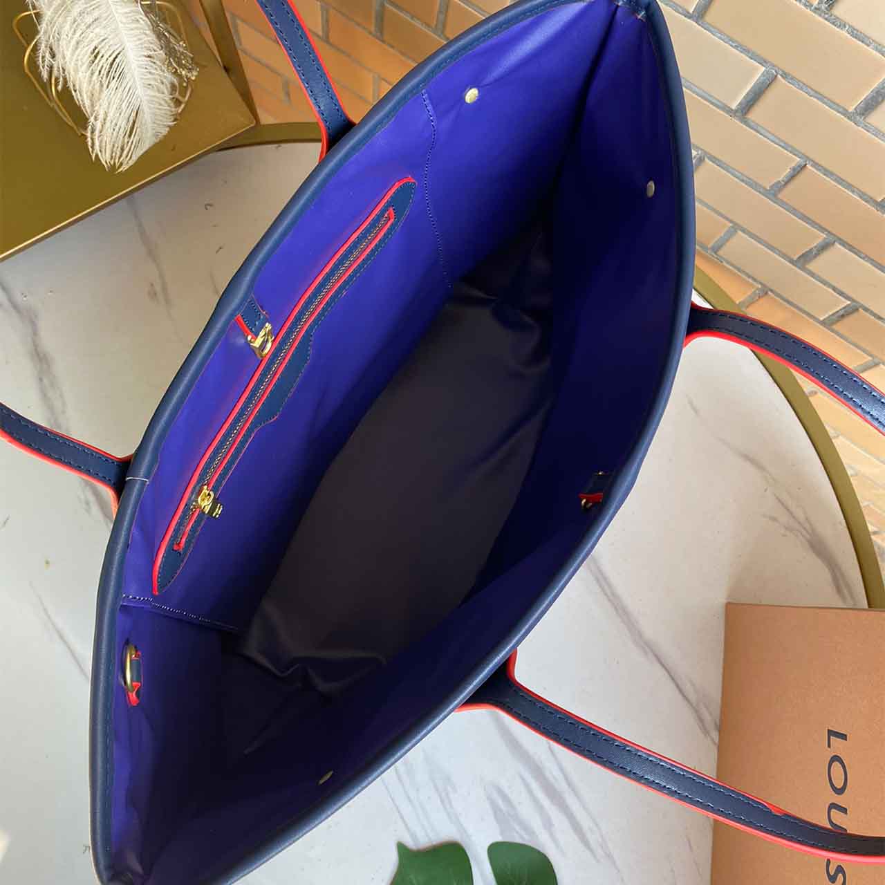 Louis Vuitton Neverfull Mm Monograma Empreinte couro M45685 preto/bege/azul