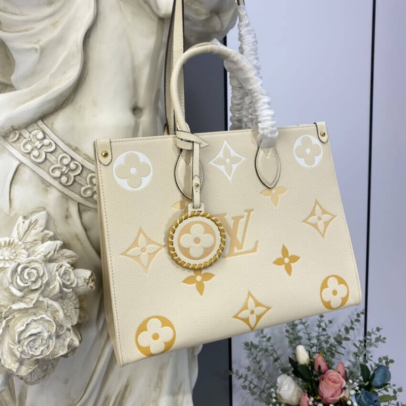 Feito de um couro de monograma empreinte com um sutil gradiente de cores no padrão de monograma em relevo, a emblemática Onhego MM Tote Bag faz parte da coleção de cápsulas da piscina. Possui dois conjuntos de alças, longas e curtas, para transporte de mão e ombro, e um interior espaçoso, que se encaixa facilmente essenciais, como um laptop. Um charme de couro dá um espírito lúdico e destaca o artesanato do VE. ]]Interior bolso zpebado plano