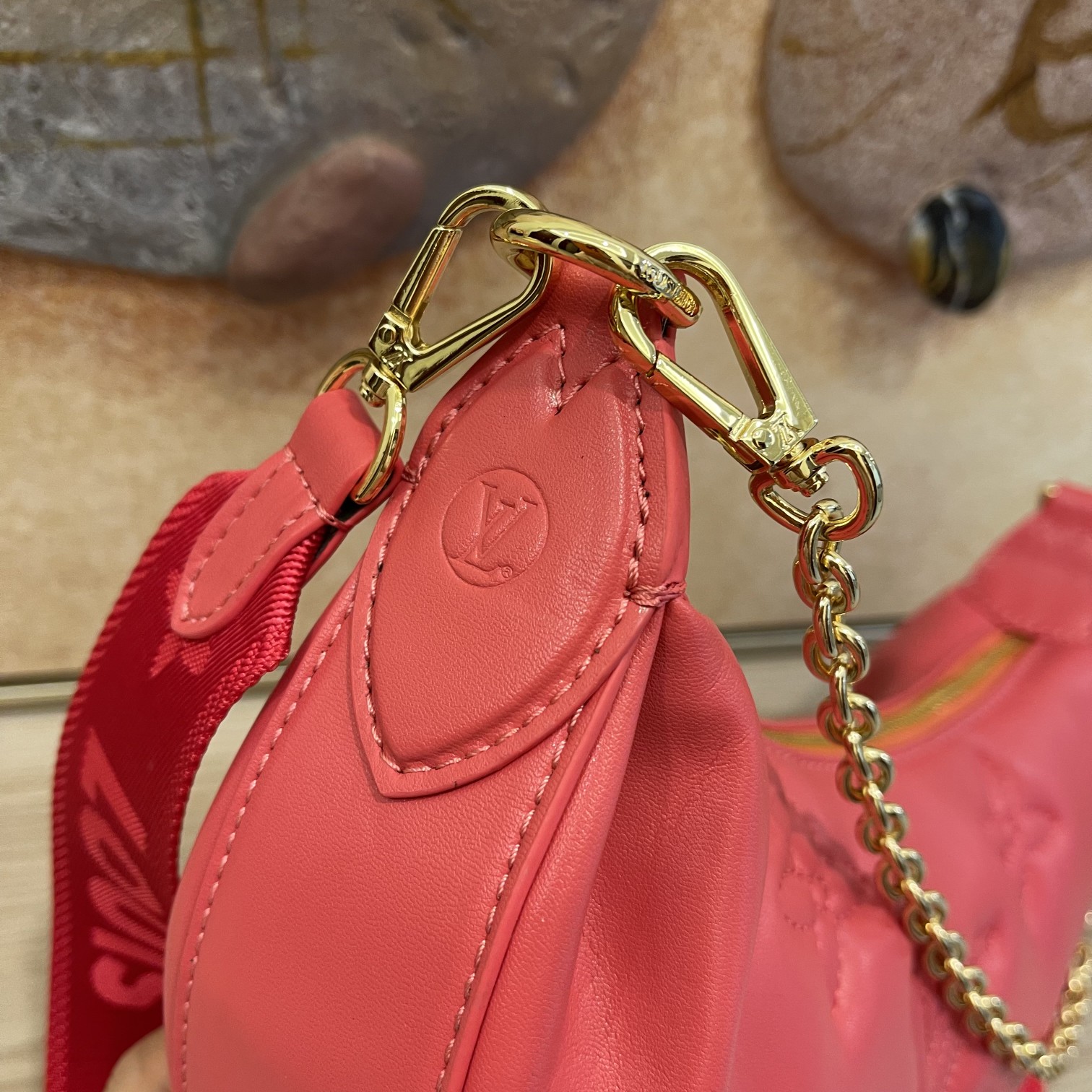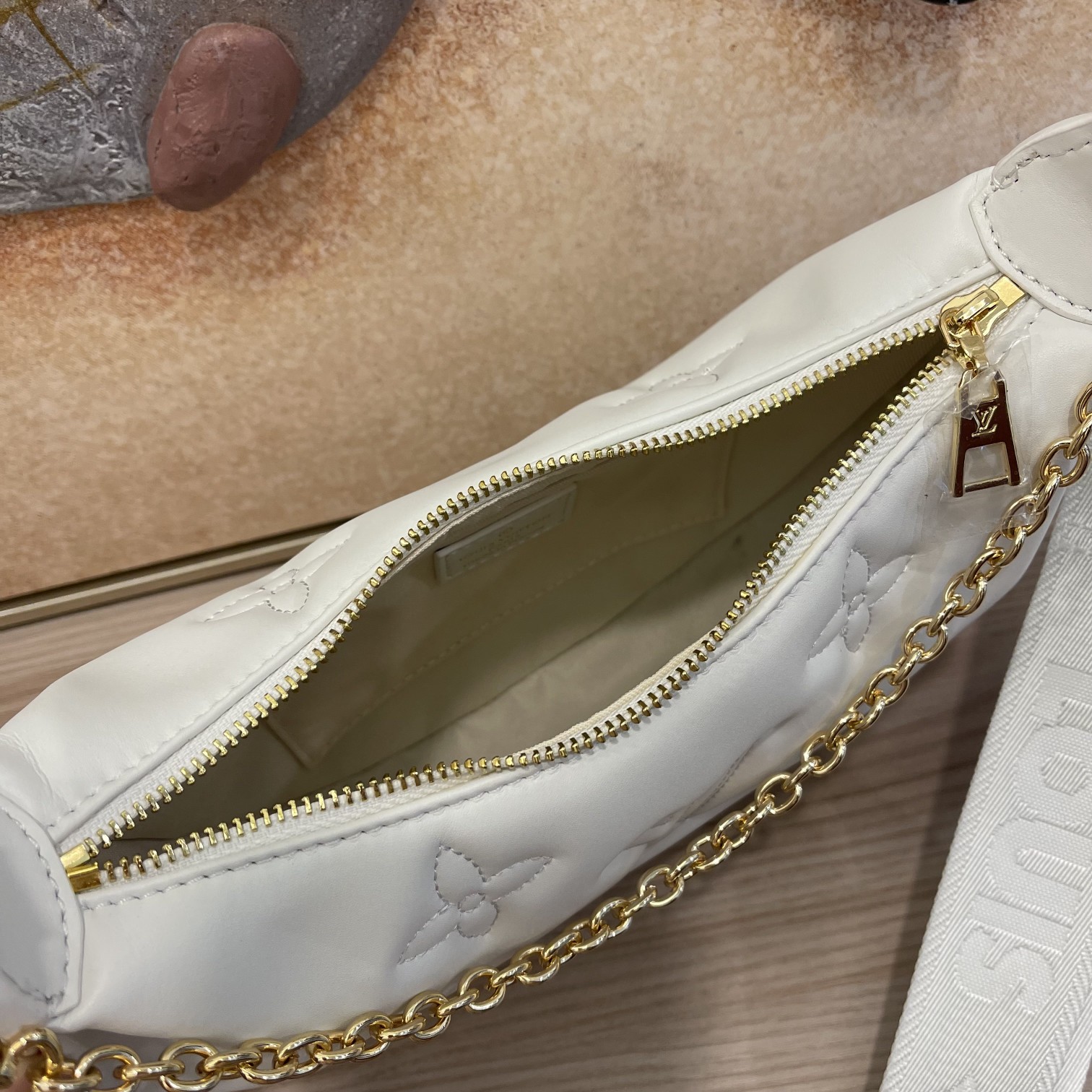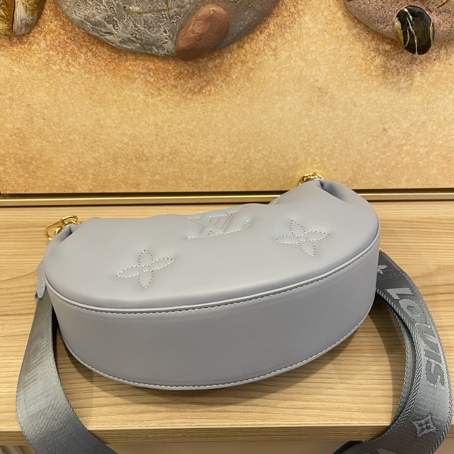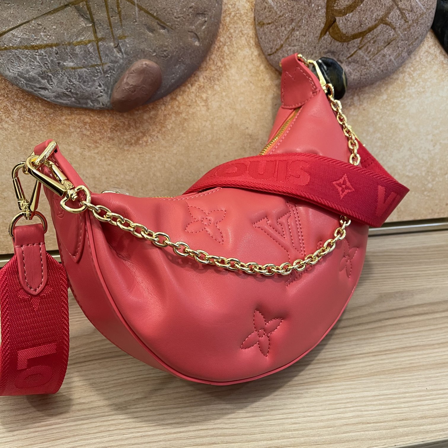 O Over the Moon se delicia com sua forma versátil em couro de bezerro acolchoado. O padrão de monograma inchado bordado traz uma sensação estatutária, enquanto a correia ajustável e a corrente de cor dourada oferecem uma infinidade de opções de transporte: cotovelo, ombro curto, corpo cruzado e ombro longo. Com a alça removida, ela pode até ser transportada como uma embreagem noturna.