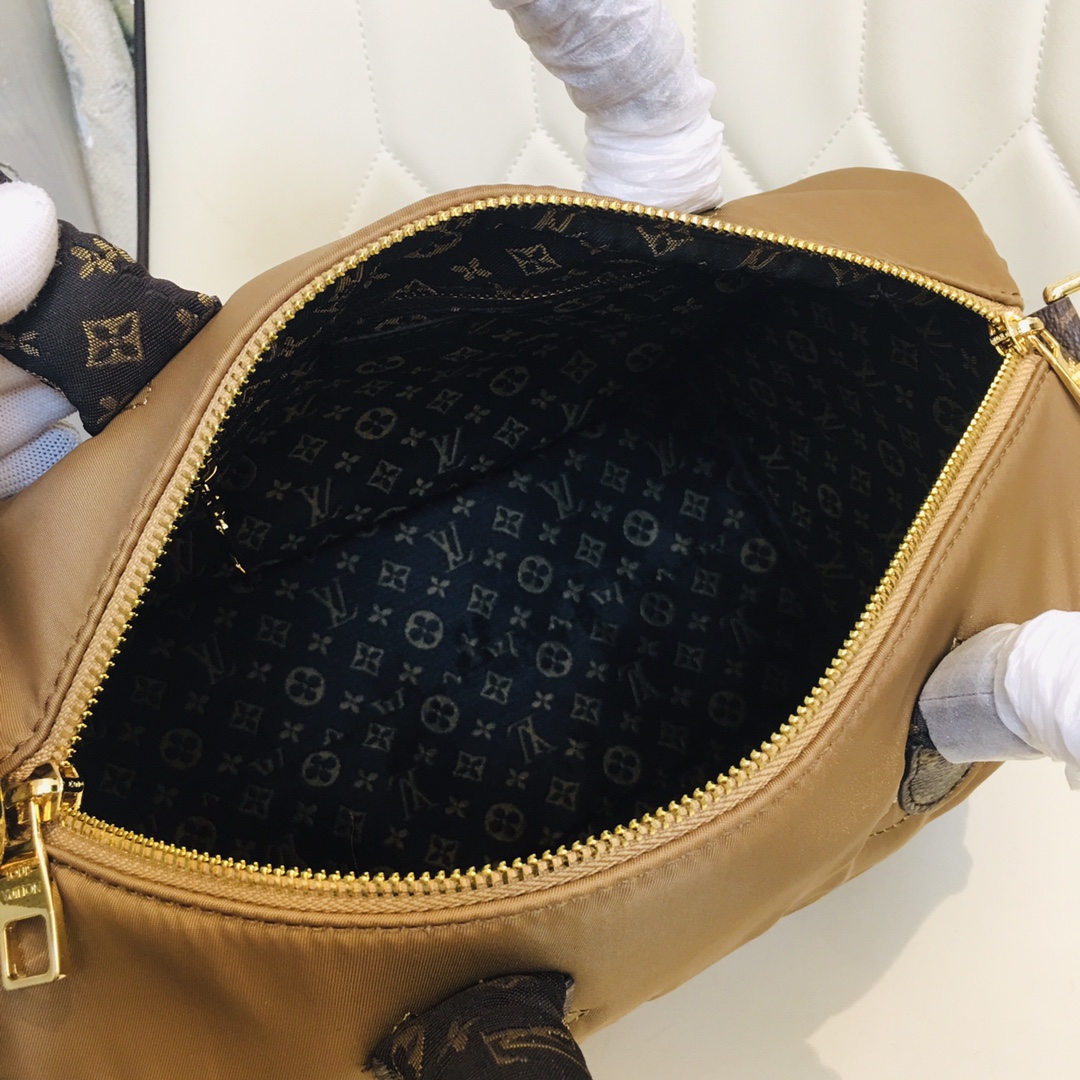 Um exemplo do compromisso da casa com o artesanato ecológico, esta bolsa rápida Bandoulière 30 é feita de nylon regenerado econil, com um padrão de monograma bordado. Seu exterior acolchoado o torna o acessório confortável perfeito para o inverno. Todos os detalhes do design do Speedy são icônicos, desde a silhueta até as alças de couro e a correia removível.