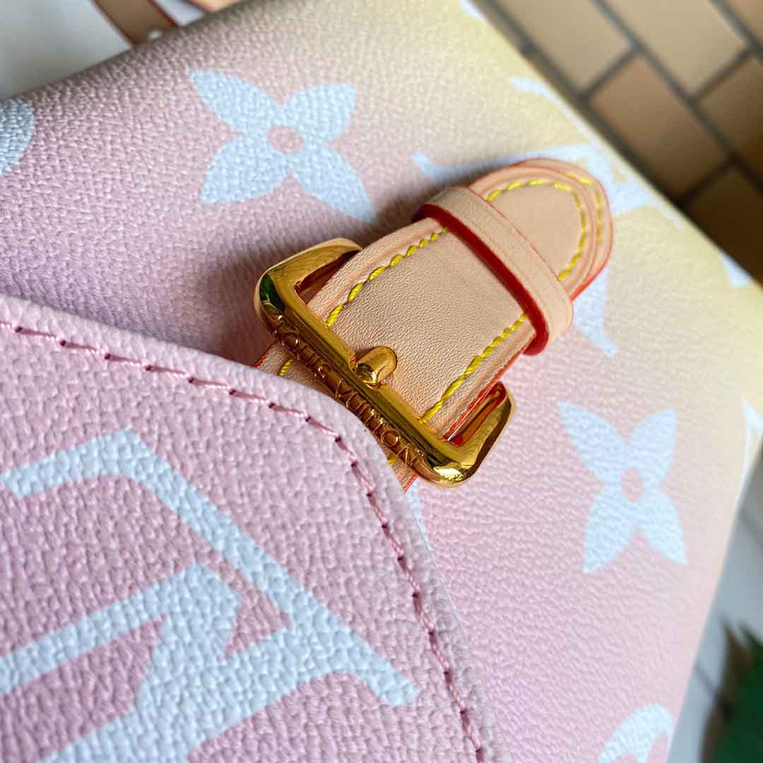 Um novo modelo exclusivo para este verão, uma pequena mochila em tela de monograma com um efeito de cor graduado como parte da coleção de acessórios, artigos de couro e pronta para vestir para o verão 2021. Este formato de miniatura fofo apresenta dois removíveis, As correias ajustáveis oferecem diferentes opções de transporte. Ele manterá essenciais, incluindo um smartphone, enquanto o bolso traseiro com zíper é ideal para cartões.