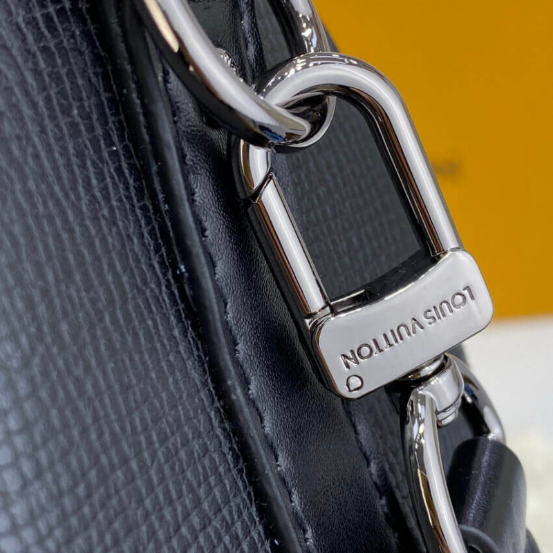 A mini versão do clássico Keepall vem com uma reviravolta imaginativa para a pré-primavera 2022: o visual do Monogram Drip do designer de streetwear japonês Nigo. O histórico padrão de monograma de Louis Vuitton no jeans preto de rua é combinado com couro de taurillon flexível em preto profundo e elegante. Um coração vermelho vibrante adiciona uma assinatura colorida a esta bolsa de cidade elegante e prática. ] forro têxtil