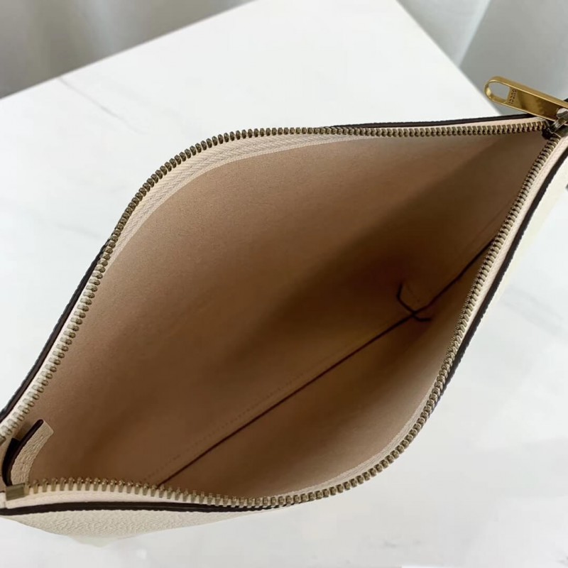 Inspirado em impressões vintage dos anos oitenta, o logotipo da Gucci é trazido à tona. O motivo do estilo retrô é apresentado na frente de um portfólio de tamanho médio em couro flexível e flexível. Fechamento