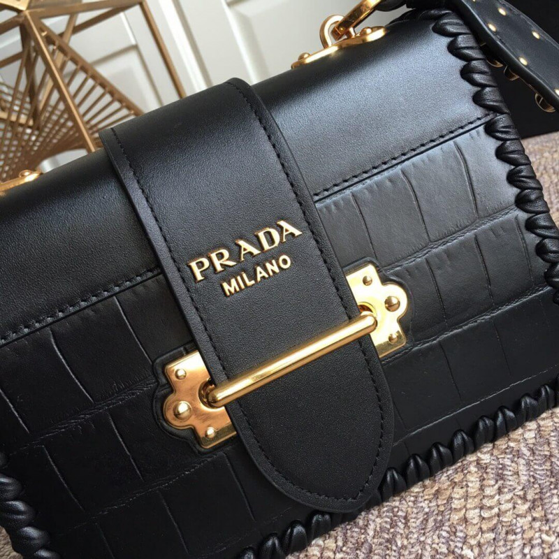 Inspirado em livros antigos valiosos, a Prada Cahier Bag, aqui em uma versão em dois tons, é feita de couro de bezerro macio. O hardware de metal oferece uma aparência inconfundível e vem com uma alça de ombro removível.