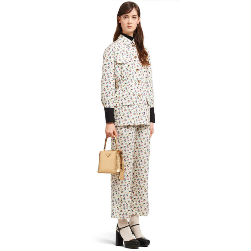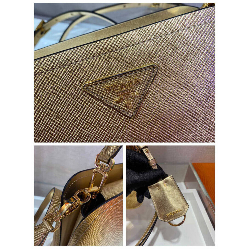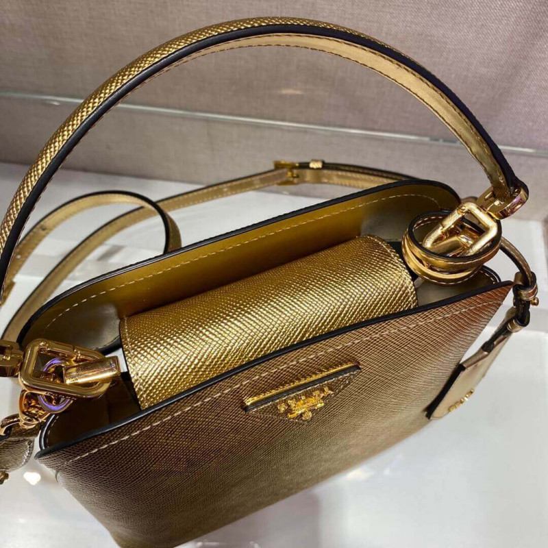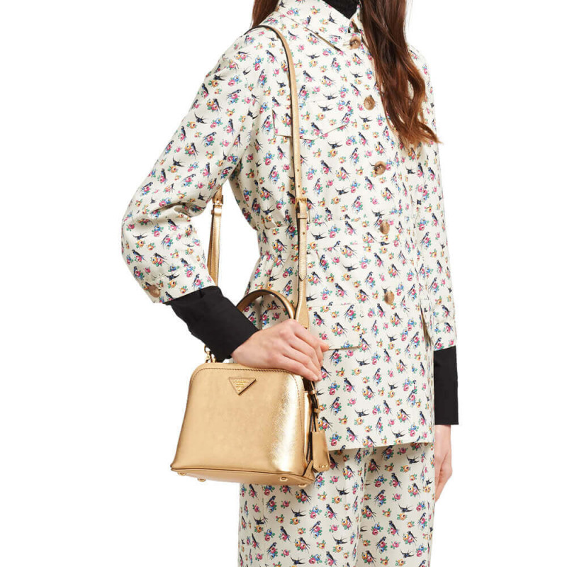 A bolsa Prada Matinee tem linhas macias. A bolsa com alça de ombro e etiqueta de nome expressa feminilidade moderna.