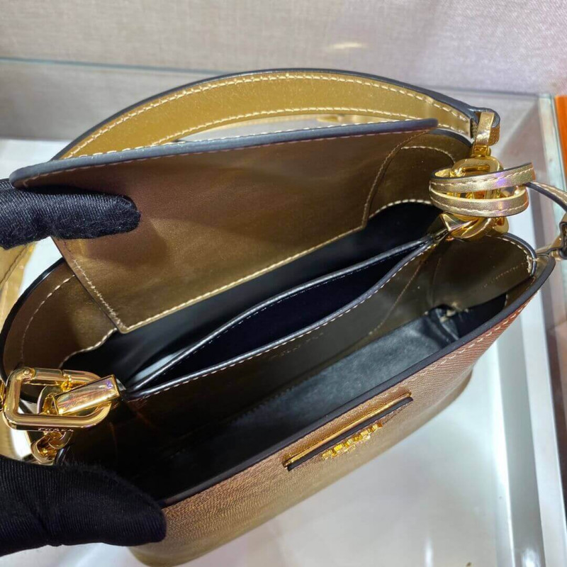 logotipo de metal no triângulo de couro de Saffiano