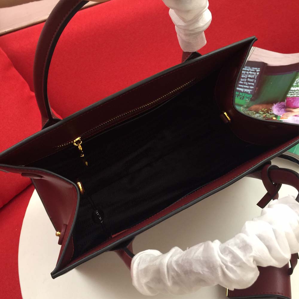 Couro de Saffiano, Calf Leatherwouble Handletetachable Strapgold Strapgold Pedaços de letras de metal de metal com tons, fechamento de letras de metal no logotipo da prada lateral, altura de altura interna, incluindo um com zíper24,5 cm de altura