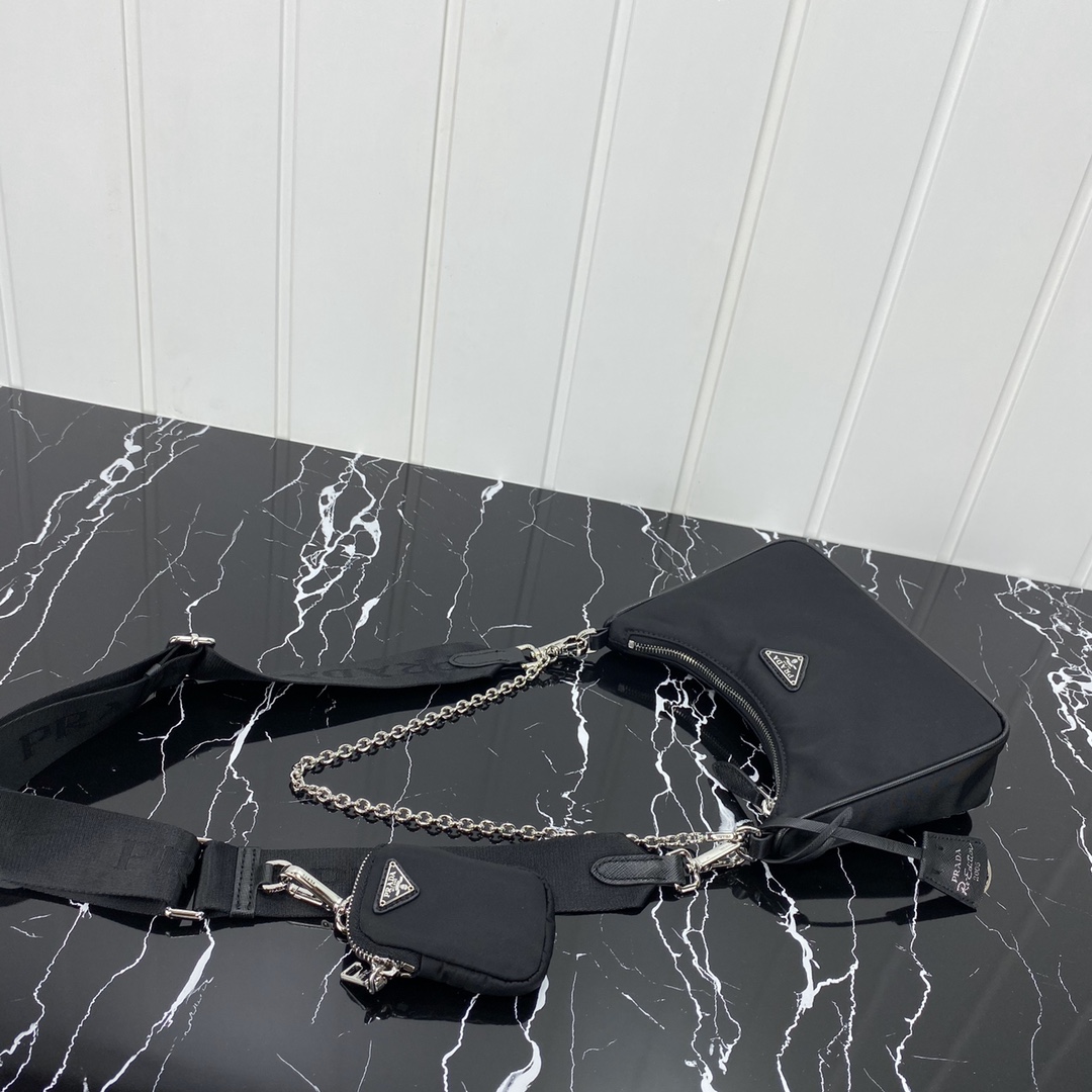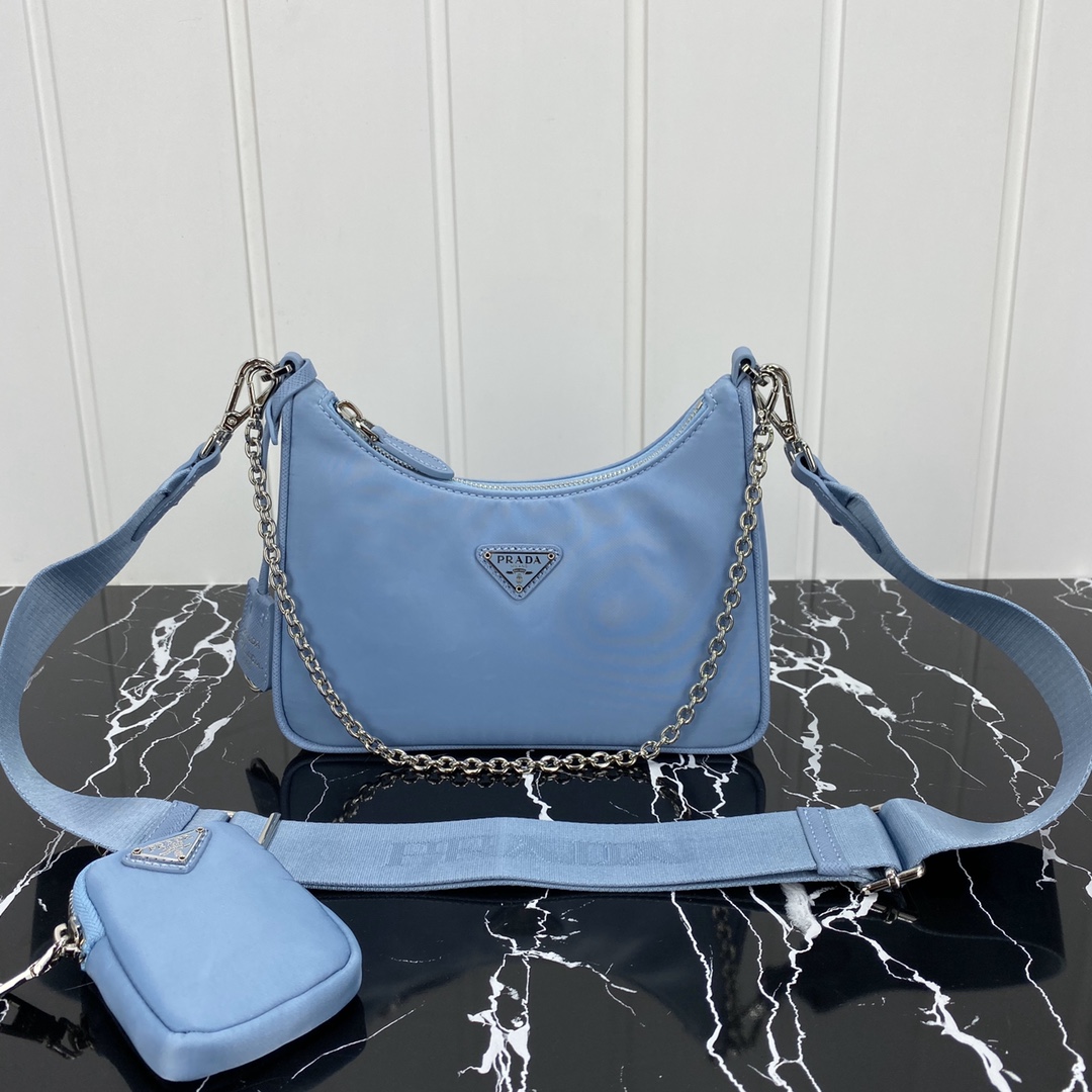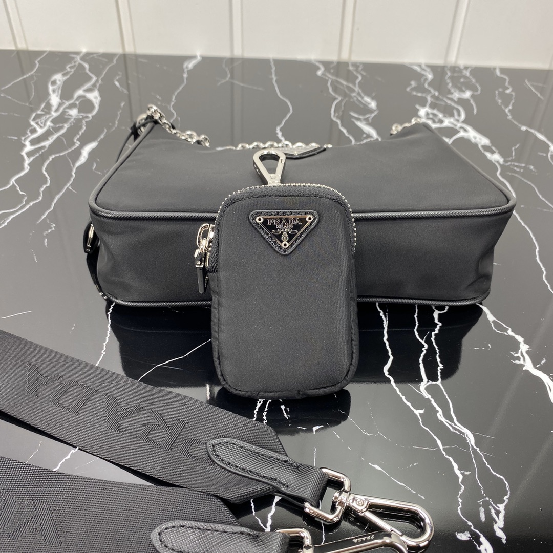 saffiano detailsremovable chain handledetachable adjustable 85 cm logo-print woven nylon shoulder strapremovable nylon pouch with zipper closure and re-edition keychainmetal hardwareenameled metal triangle logo on the frontzipper closureprada logo print nylon lining18 cm height