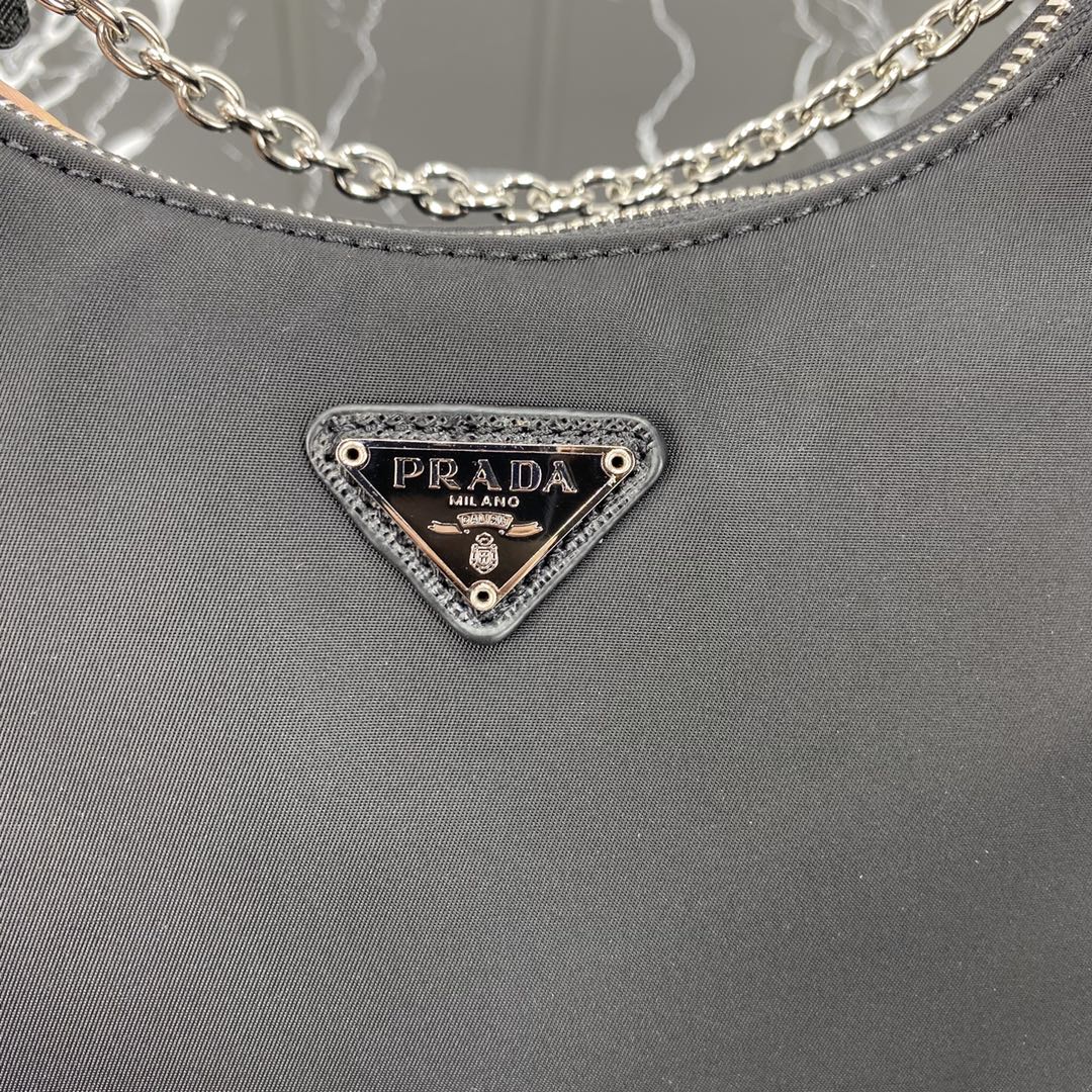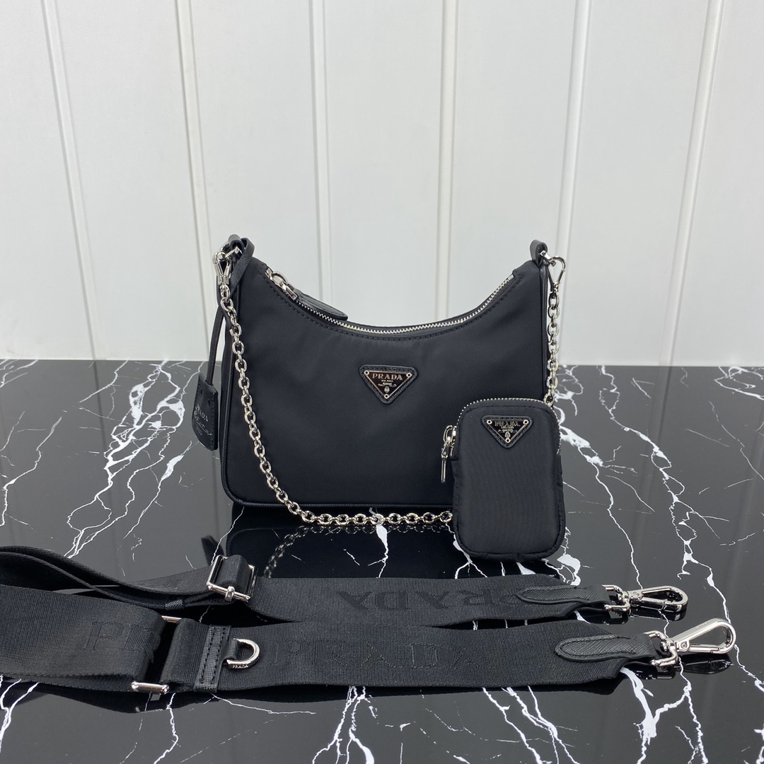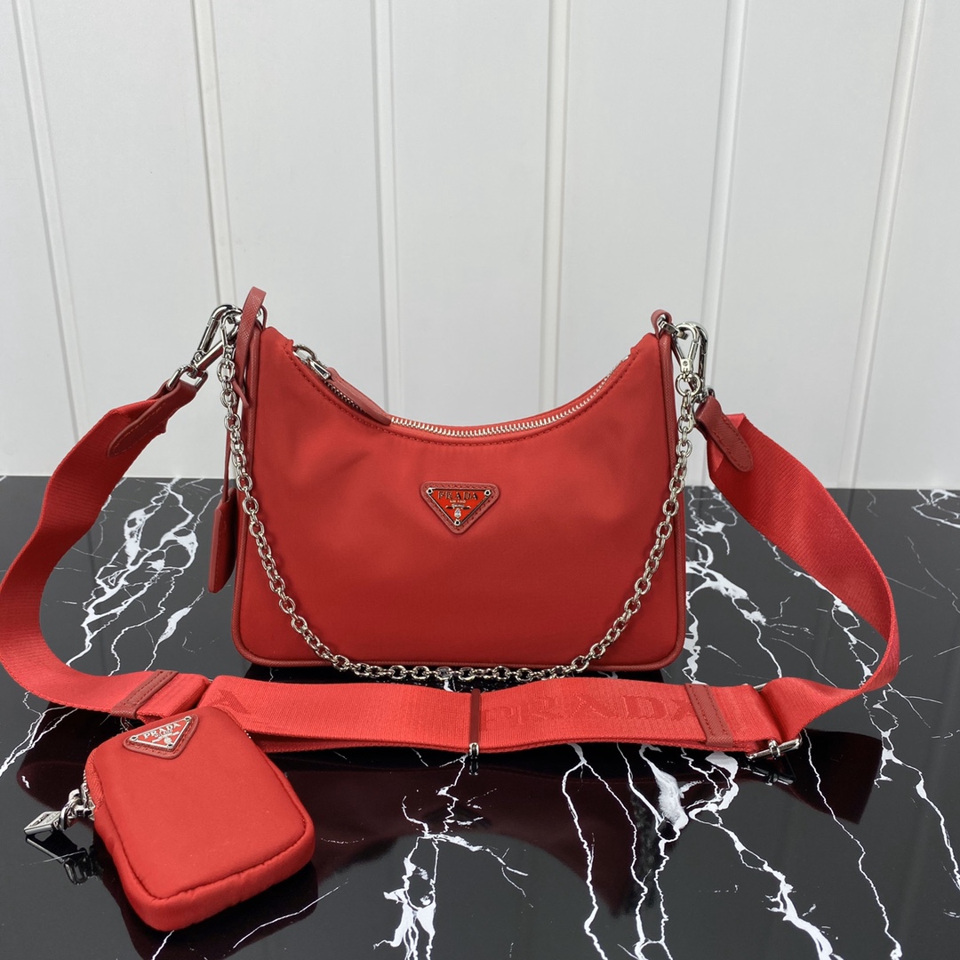 saffiano detailsremovable chain handledetachable adjustable 85 cm logo-print woven nylon shoulder strapremovable nylon pouch with zipper closure and re-edition keychainmetal hardwareenameled metal triangle logo on the frontzipper closureprada logo print nylon lining18 cm height