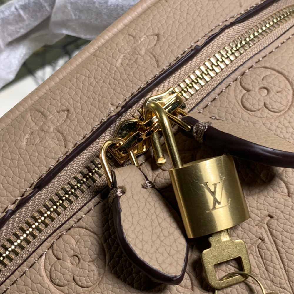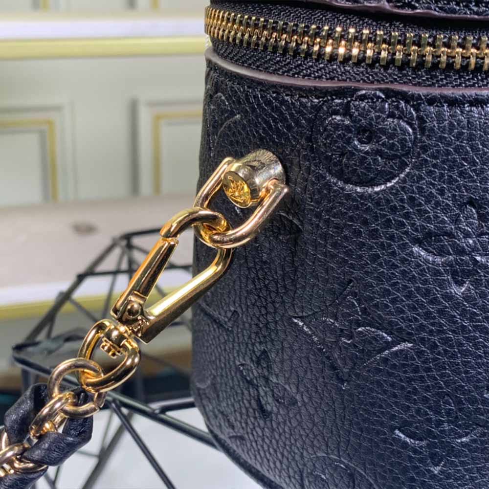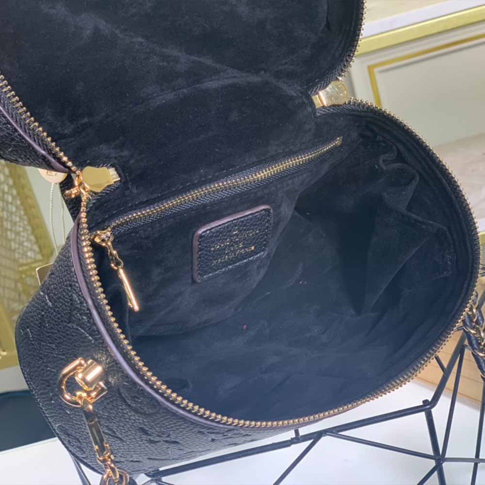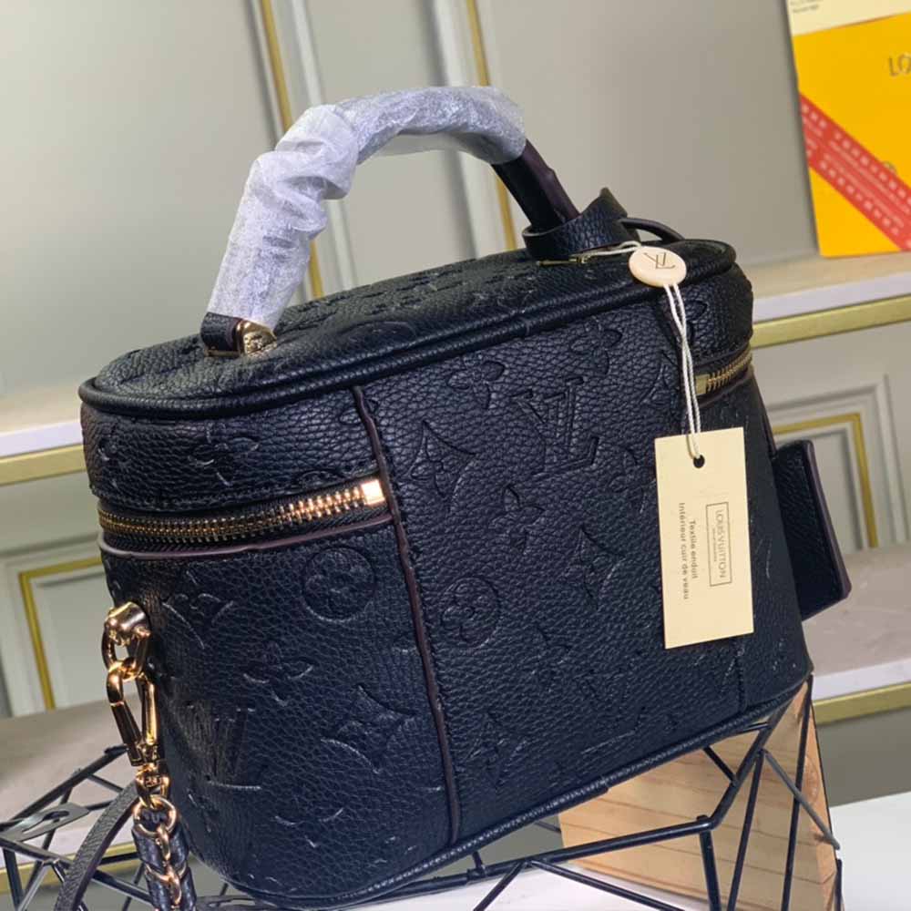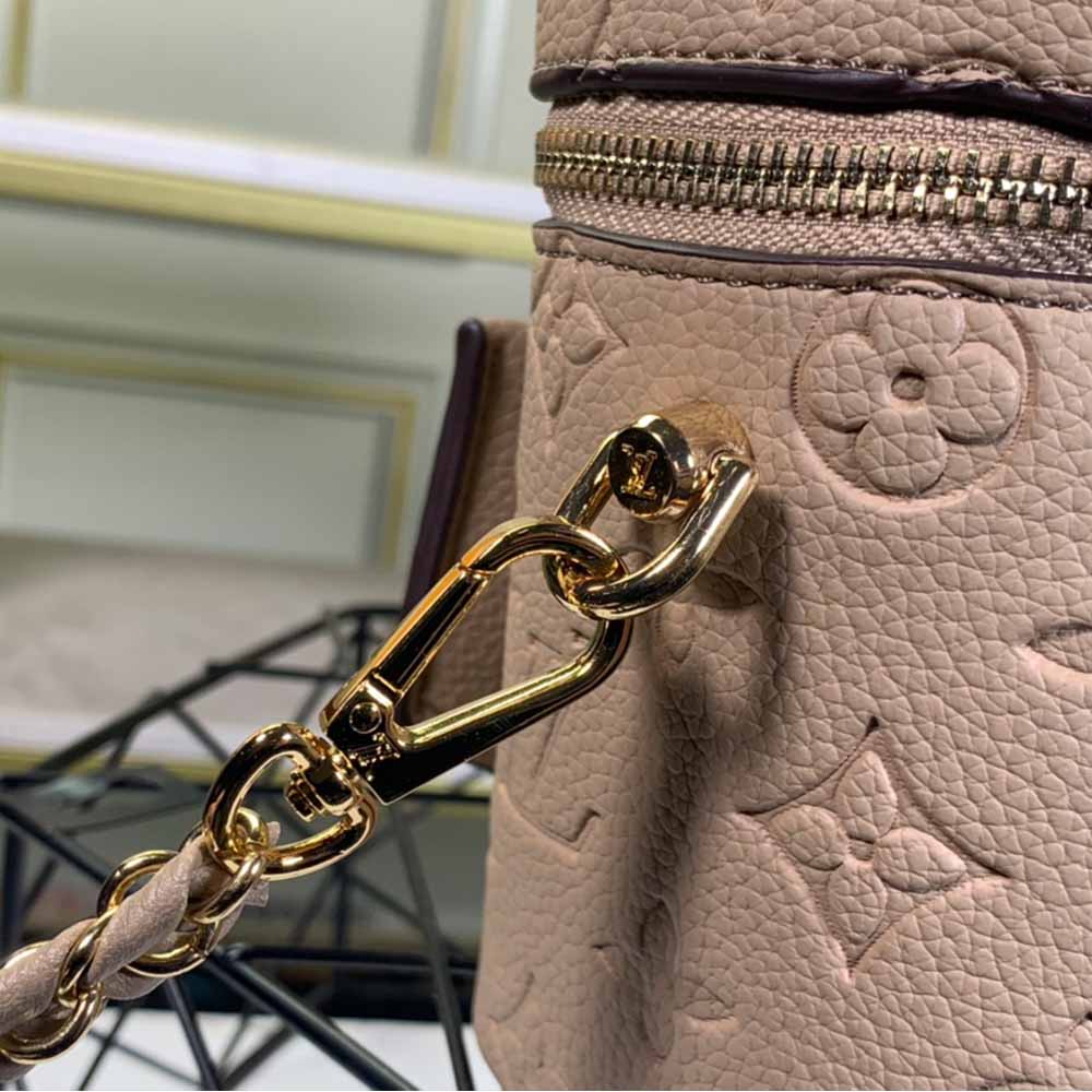 Inspirado na vaidade do monograma Nice, a bolsa PM da vaidade em couro de Monogram Empreinte é uma bolsa moda com uma forma distinta. É feito de couro granulado, em relevo com o motivo gigante do monograma. Seus puxadores de zíper da borla, alça top -top e tira removível o tornam versátil e surpreendentemente elegante.